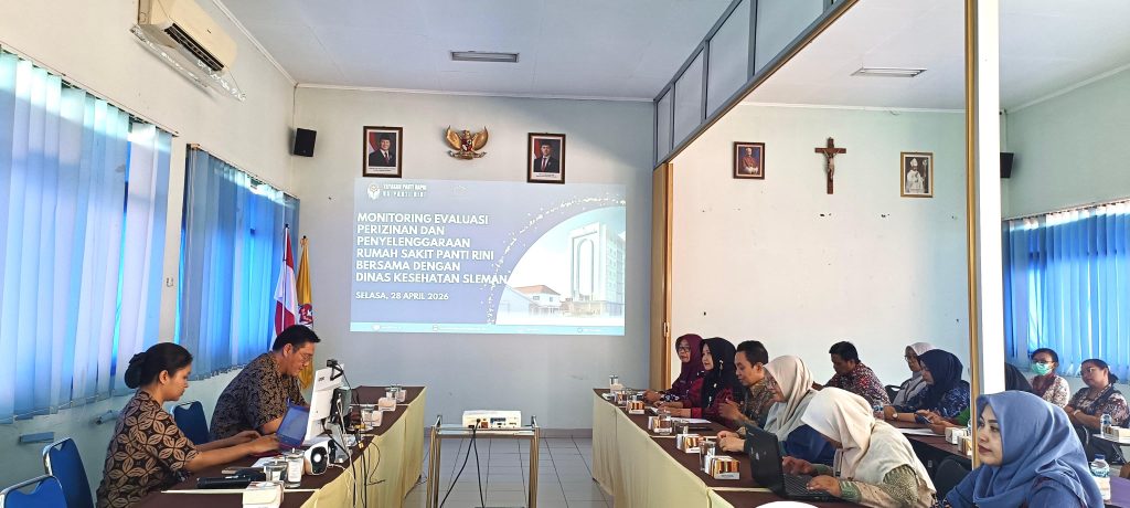 Sleman, 28 April 2026— Dinkes Sleman menggelar Monitoring dan Evaluasi (Monev) Terpadu kesehatan di RS Panti Rini, Kegiatan ini menjadi bagian dari rangkaian Monev terpadu yang ke depan akan dilaksanakan secara bergilir di seluruh fasilitas pelayanan kesehatan (fasyankes) di Sleman guna memperkuat pengawasan dan peningkatan mutu layanan kesehatan, memastikan pelayanan berjalan sesuai standar dan regulasi